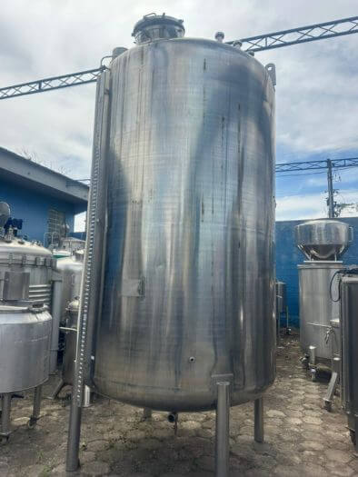 Tanque sanitário | em aço inox 316 L | cap. 12.000 Lts | camisa | fudo cônico | hermético | suporte para agitação