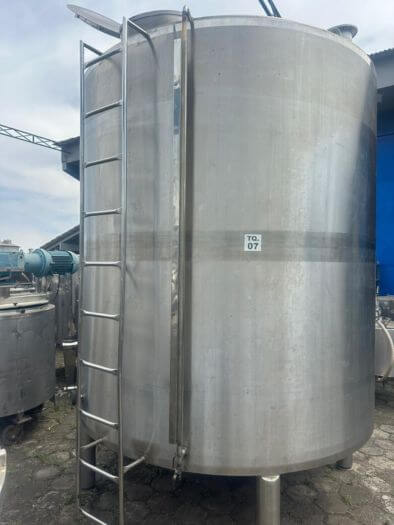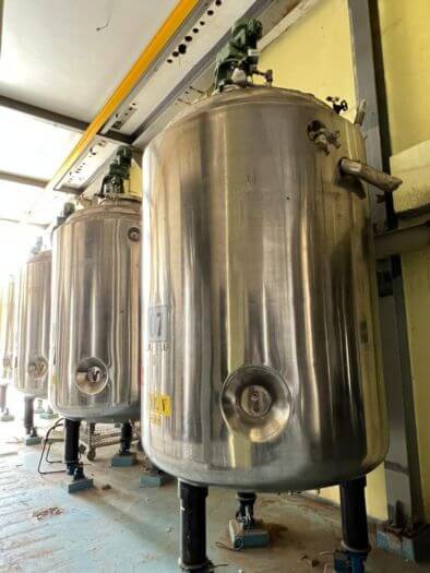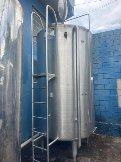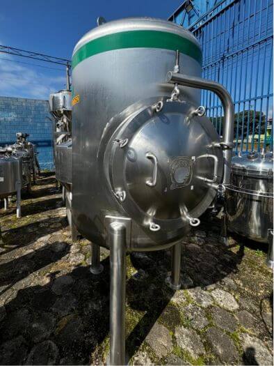 Capacidade de 8000 litros. Em inox 316L, hermeticamente fechados, com régua de nível, sanitários.