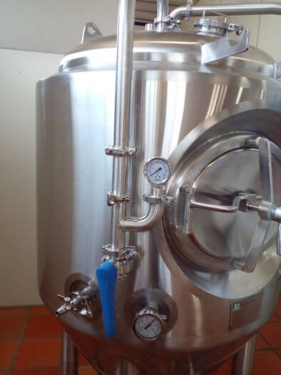 Tanque reservatório de 1.000 litros, cônico, com polimento sanitário e válvula de fundo.